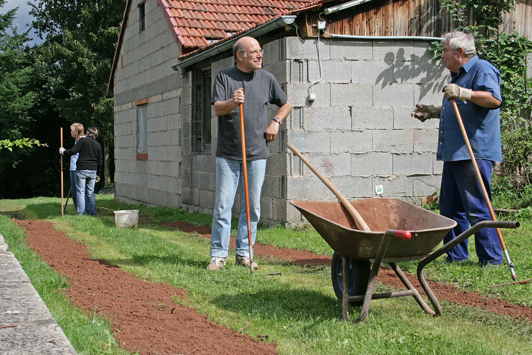 nachbarlicher Wochenendeinsatz zur Renovierung des Weges hinterm Garten
