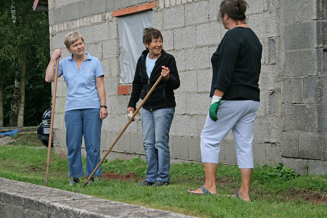nachbarlicher Wochenendeinsatz zur Renovierung des Weges hinterm Garten