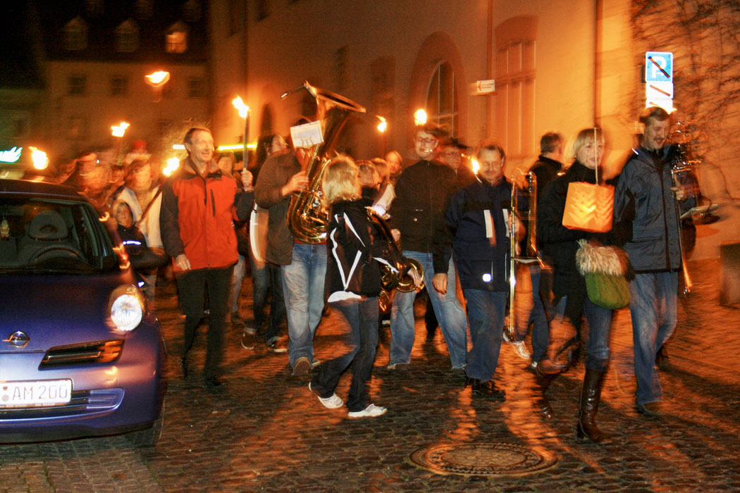 Laternenumzug fuer Erwachsene mit Marchin-Band Gauaschach