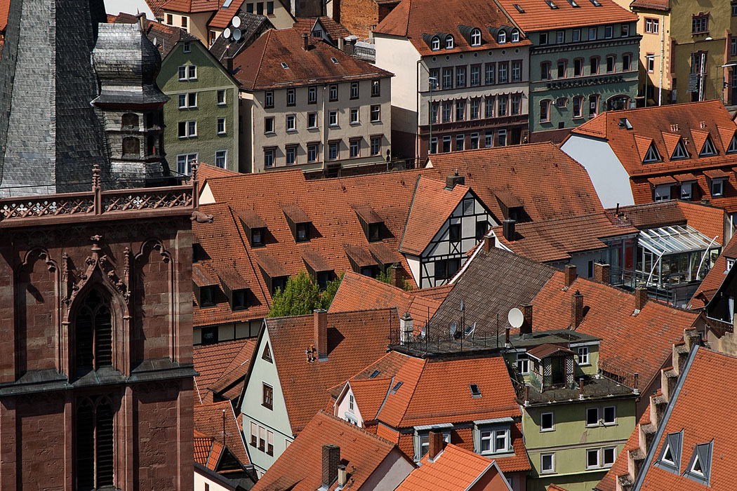 Ausflug nach Wertheim . Wertheim . Blick von der Burg auf die Stadt . Platz ist in der kleinsten Huette - das gibt's also nicht nur in Italien .