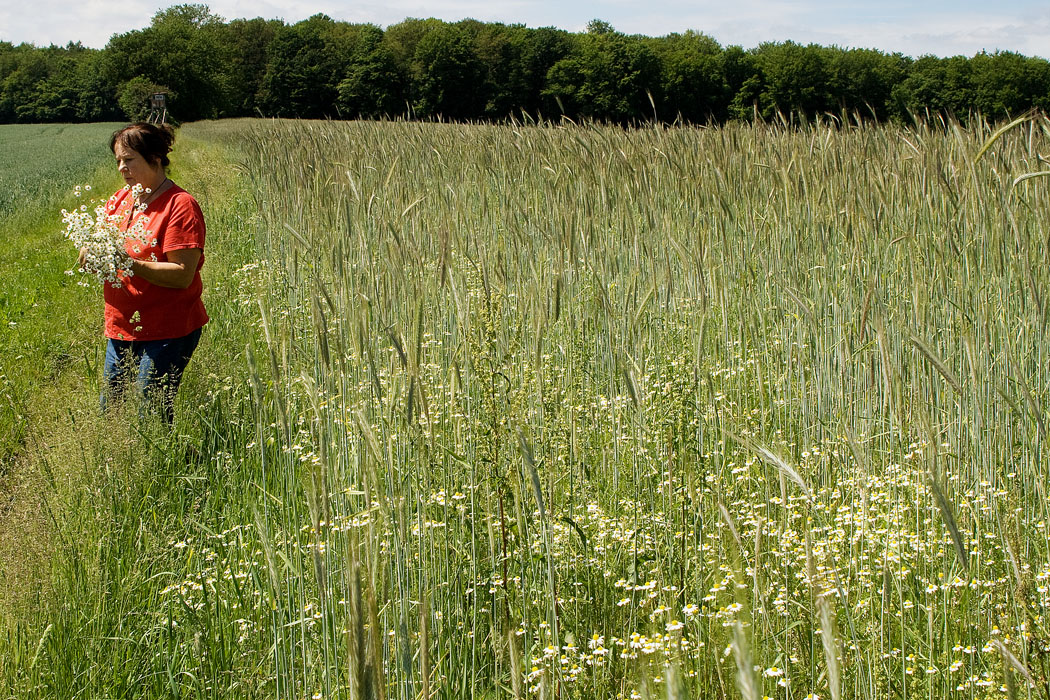 Spaziergang am Hofhoelzel ueber dem Eidenbacherhof - Jenny pflueckt Blumen im Feld am Starmich -
