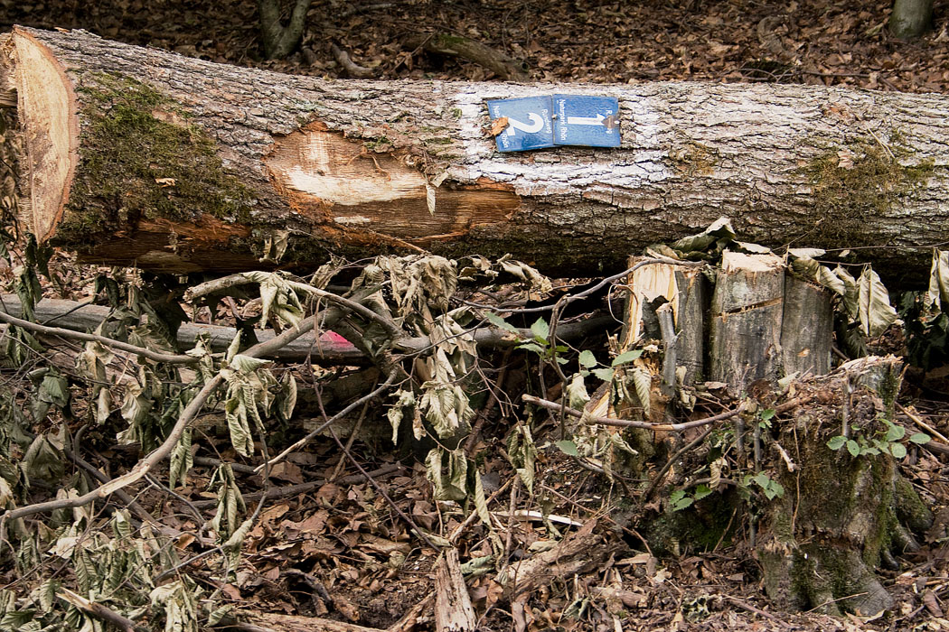 Wanderung abwaerts der Schondra bei Heiligkreuz - Erschreckend, wie der Wald aussieht - Ist das symbolisch gemeint. - Z.B. 'der Naturpark muss weg'