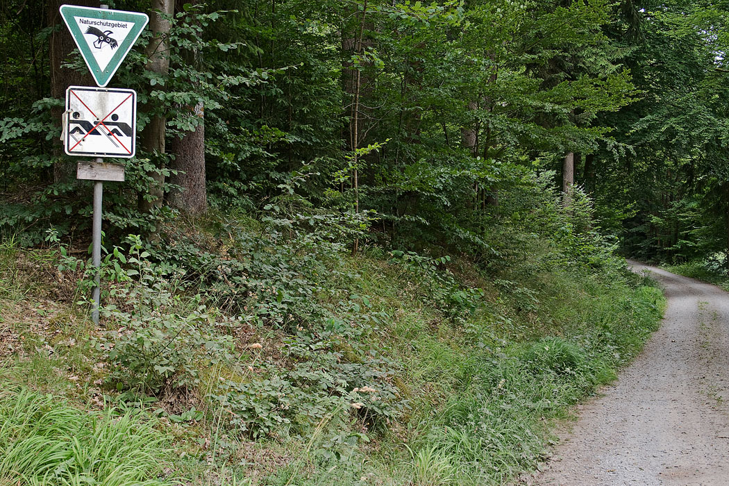 Wanderung abwaerts der Schondra bei Heiligkreuz - Erschreckend, wie der Wald aussieht - Man erfaehrt, hier sei sogar Naturschutzgebiet
