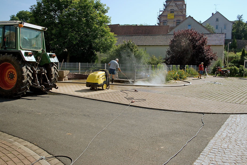 Die Dittlofsrodaer Feuerwehrmaenner saeubern den Dorfbrunnen