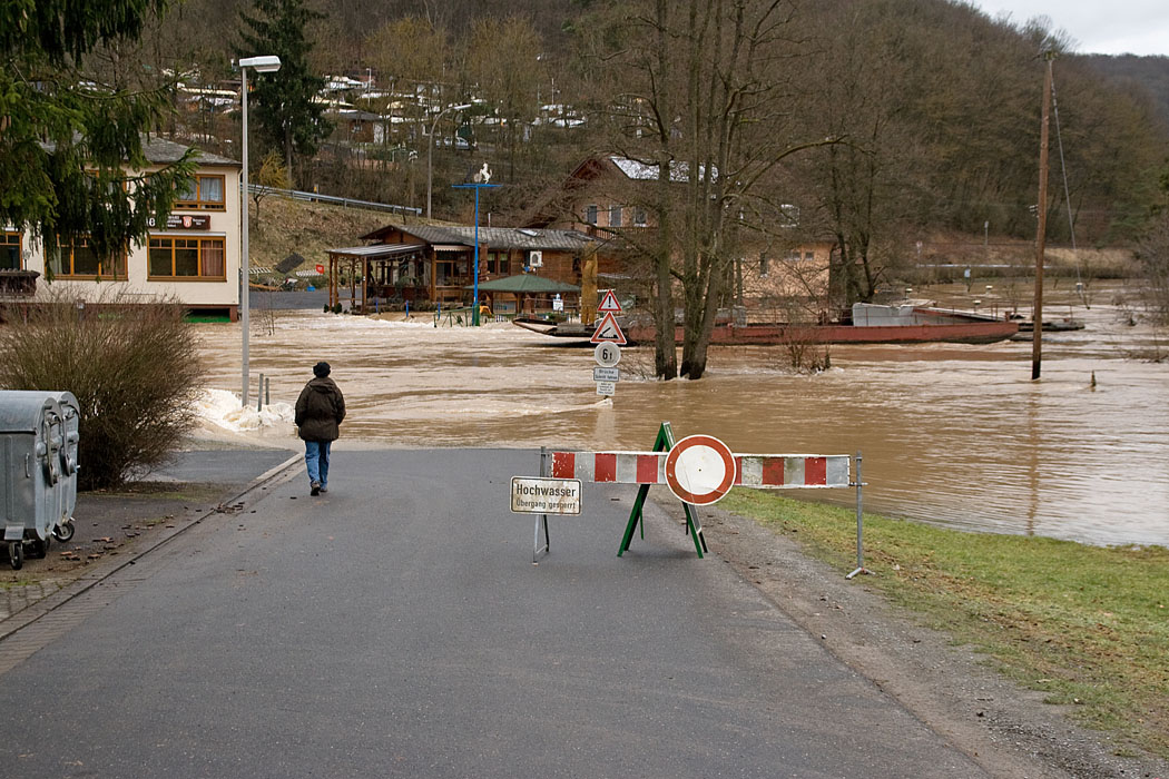 Fraenkische Saale - Hochwasser: Besonders betroffen von regelmaessigen Ueberschwemmungen der saalenahen Ortskerne sind Bad Kissingen, Westheim, Diebach, Graefendorf, Wolfsmuenster und Gemuenden, wie die Hochwassermarken an historischen Gebaeuden bezeugen - So wurde gegenueber einem Normal-Pegelstand von 1,55m in Wolfsmuenster die 5m-Pegelmarke seit 1969 (Aufzeichnungsbeginn) bereits sechsmal ueberschritten (Wasserstaende: 15 - 01 - 2011 - 604 cm, 03 - 01 - 2003 - 650 cm, 24 - 01 - 1995 - 582 cm, 08 - 02 - 1984 - 576 cm, 06 - 01 - 1982 - 572 cm, 06 - 02 - 1980 - 519 cm) - Bad Kissingen erlebt nicht selten Ueberschwemmungen mehrmals in einem Jahr - Jedoch sind im historischen Stadtkern Flutschutzmassnahmen durch den Bau von Wehren und Schutzplanken durchgefuehrt worden -