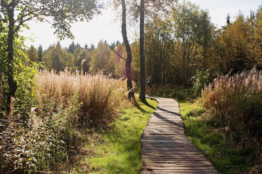auf dem Bohlensteg durchs Moor