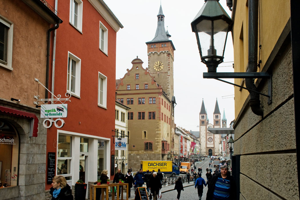 das Alte Rathaus Grafeneckart, rechts hinten der Kiliansdom
