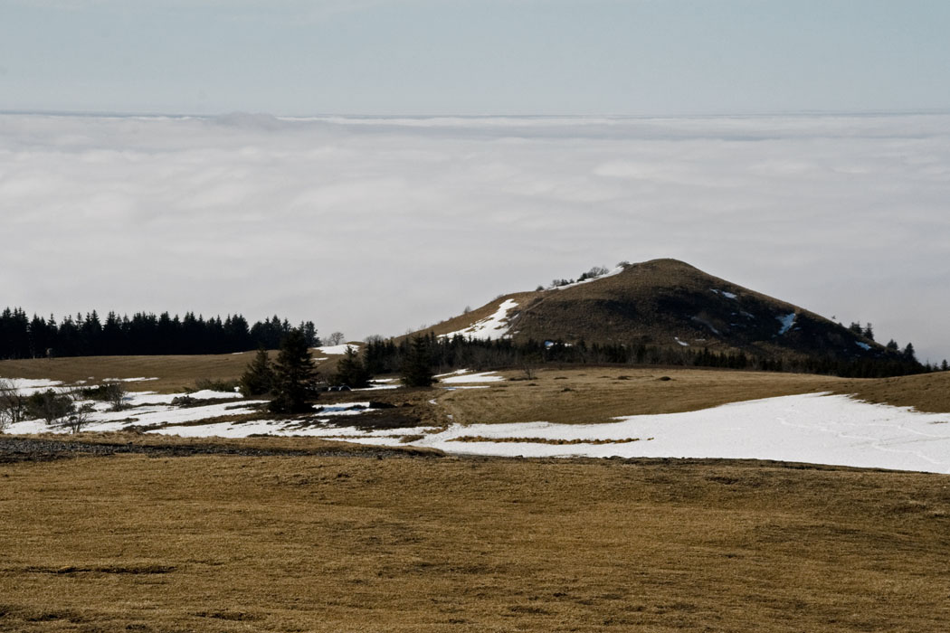 auf der Wasserkuppe bei dichtem Nebel in den unteren Lagen