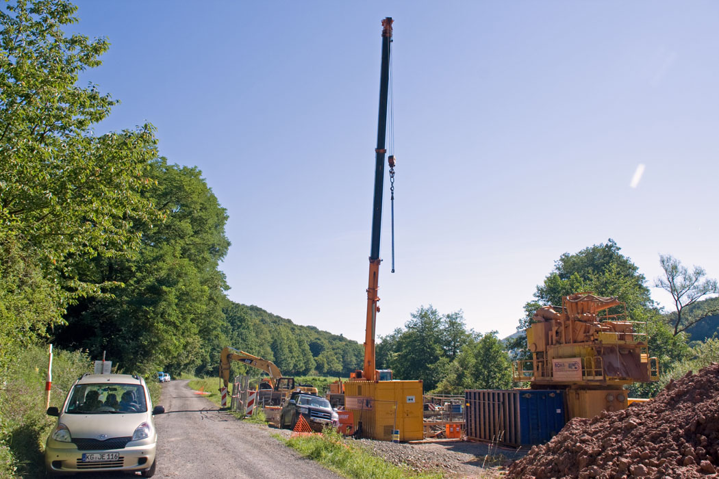 die Baustelle, links oben verlaueft die Schiene der Bahn