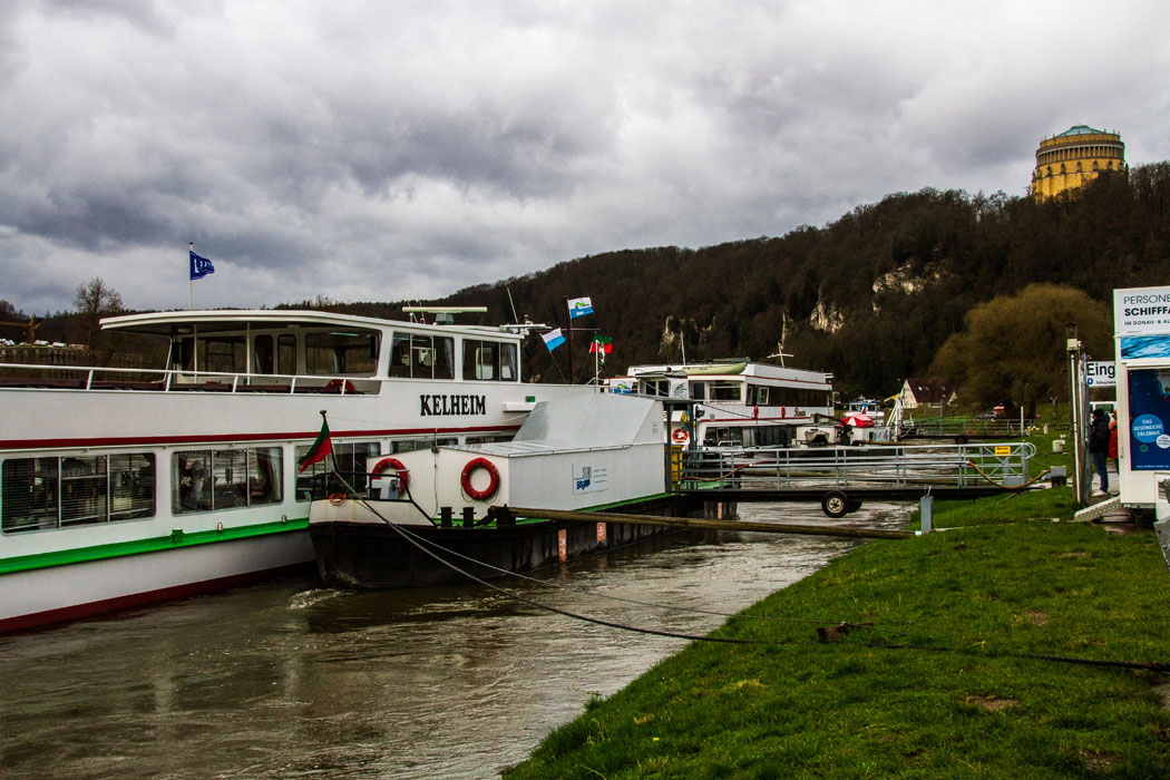 das Schiff ,,Kelheim,,, mit dem wir den Donaudurchbruch passierten - rechts oben die Befreiungshalle