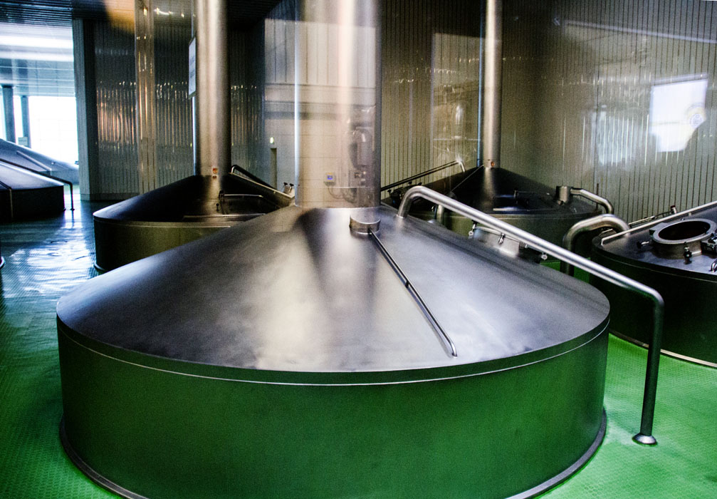 die Brauerei ist eine riesige Fabrik, die 300 Tonnen Malz taeglich vergaert