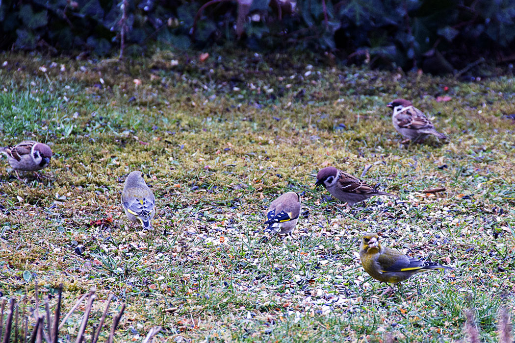 Feldsperlinge, Gruenhaemfling und unbekannt