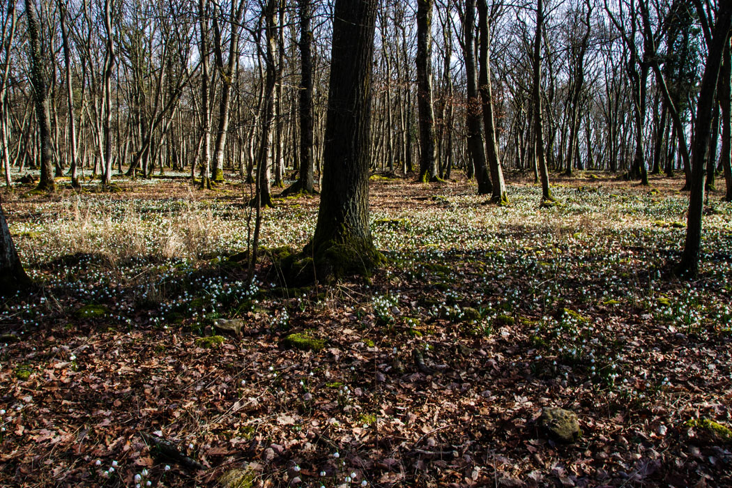 Spaziergang am Hohen Haupt.x.x.x.ganze 'Teppiche' von Maerzenmbechern.x.x.x.Hohes Haupt' (368m) - das ist ein Auslaeufer noerdlich der 'Gans' (415m) am Sodenberg - Die 'Gans' (415m) am Sodenberg ist ein hervorragender Aussichtspunkt fuer Ausblicke in die Hochrhoen, das Tal der Fraenkischen Saale, auf Hammelburg und die Anhoehen des Unterfraenkischen Berglandes - Dort befinden sich auch zwei Gedenksteine des Rhoen-Klubs, ein groesserer fuer die Verstorbenen bis 1988, ein kleinerer fuer die Eingliederung des Sodenbergs in die Region 'Rhoen' im Jahr 1885