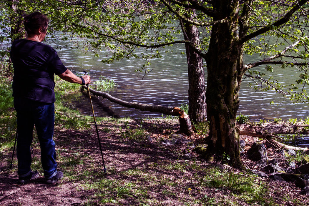 Spaziergang am Sindersbach.x.x.x.auf dem Rueckweg am Rueckhaltebecken des Sindersbaches.x.x.x.hier hat sich der Biber geschafft.x.x.x.Das Pumpspeicherkraftwerk Langenprozelten ist ein 1976 in Betrieb genommenes Pumpspeicherkraftwerk bei Gemuenden - Das Wasserkraftwerk hat mit seinen zwei Francis-Pumpturbinen eine Leistung von 160 MW - Das Oberbecken liegt etwa 300 Hoehenmeter oberhalb des Unterbeckens auf der Sohlhoehe (534 m ueNN) im Sackenbacher Sohl und ist mit diesem durch einen etwa 1,3 km langen Stollen verbunden - Die maximale Fallhoehe ist 320 m - Das Oberbecken hat ein Fassungsvermoegen von ca - 1,5 Mio - mKubik - Das Pumpspeicherwerk Langenprozelten liefert nur Bahnstrom und ist ein wichtiges Spitzenlastkraftwerk im Bahnstromnetz - Das maximale Energiespeichervermoegen betraegt 950 MWh - Das im Unterbecken gestaute Gewaesser ist der Sindersbach - Er fuehrt im Sommer meistens kein Wasser - Deshalb wird bei Bedarf aus einem weiteren Rueckhaltebecken, das 1,2 km unterhalb des Unterbeckens liegt, Wasser hochgepumpt - Beide Absperrbauwerke (Ober- und Unterbecken) sind Steinschuettdaemme mit einer Asphaltbeton-Aussendichtung -.x.x.x.Ruppertshuetten ist ein Ortsteil von Lohr am Main und hat auf einem Gebiet von 429 Hektar ca - 800 Einwohner - Der Ort entstand im 16 - Jahrhundert aus einer Glasmachersiedlung - Seine erste urkundliche Erwaehnung findet sich 1502 - Der Ort liegt im bayerischen, unterfraenkischen Teil des Spessarts im von Wald umgebenen Sindersbachtal - Zu Ruppertshuetten gehoert auch die 5 km noerdlich direkt an der bayrisch-hessischen Grenze gelegene ehemalige Zollstation, spaeter Forsthaus und jetzige Waldgaststaettenanlage Bayrische Schanz - Die Kirche von Ruppertshuetten wurde 1874 in neugotischem Stil errichtet und ist dem Hl - Wendelin geweiht - Die alte Kirche, errichtet waehrend der Gegenreformation auf Initiative des Kapuzinerpaters Martin von Cochem (1634-1712), wurde aufgrund von wiederkehrenden Hochwasserschaeden zu einem Wohnhaus umgestaltet -