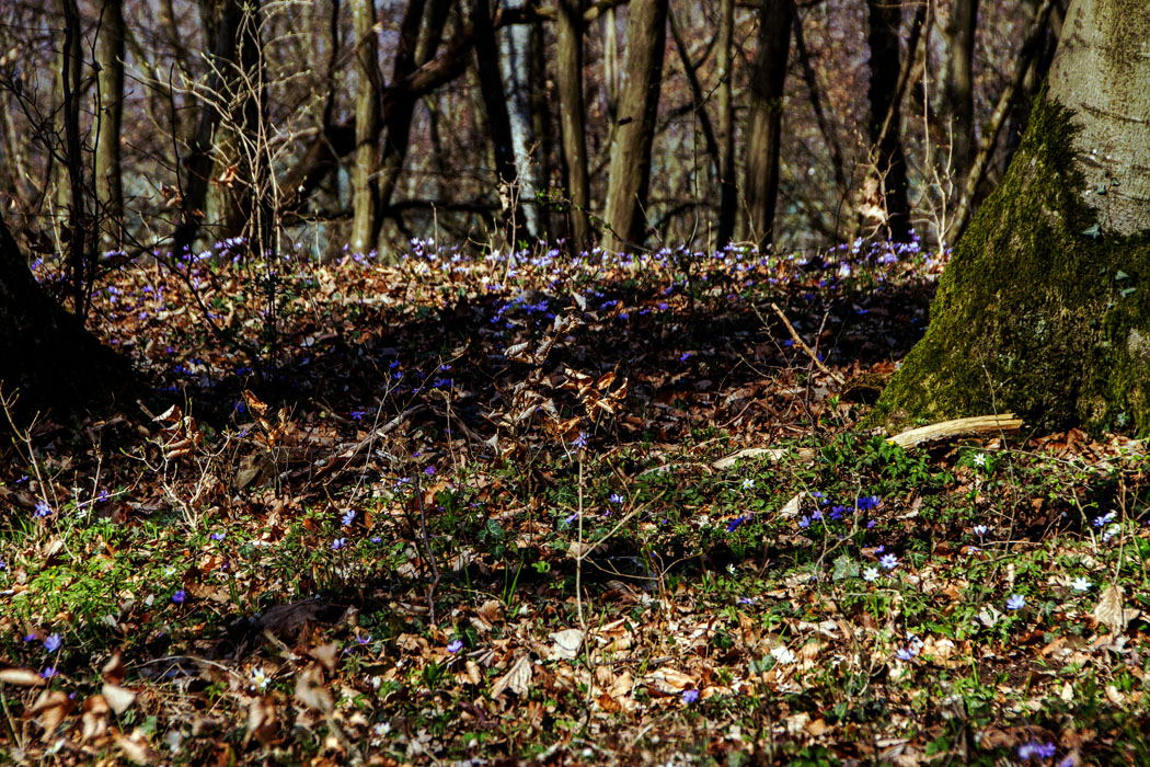 ganze Tempal von Leberbluemchen im Buchenwald unter der Gans