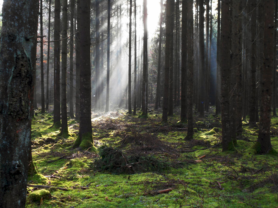 die Sonne faellt auf's Moos