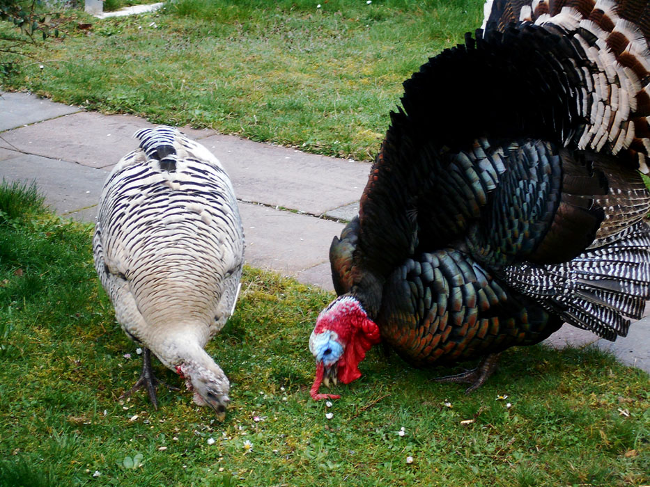 Truthahn und -henne (Puter und Pute) verfolgen Achim bis vor die Haustuer