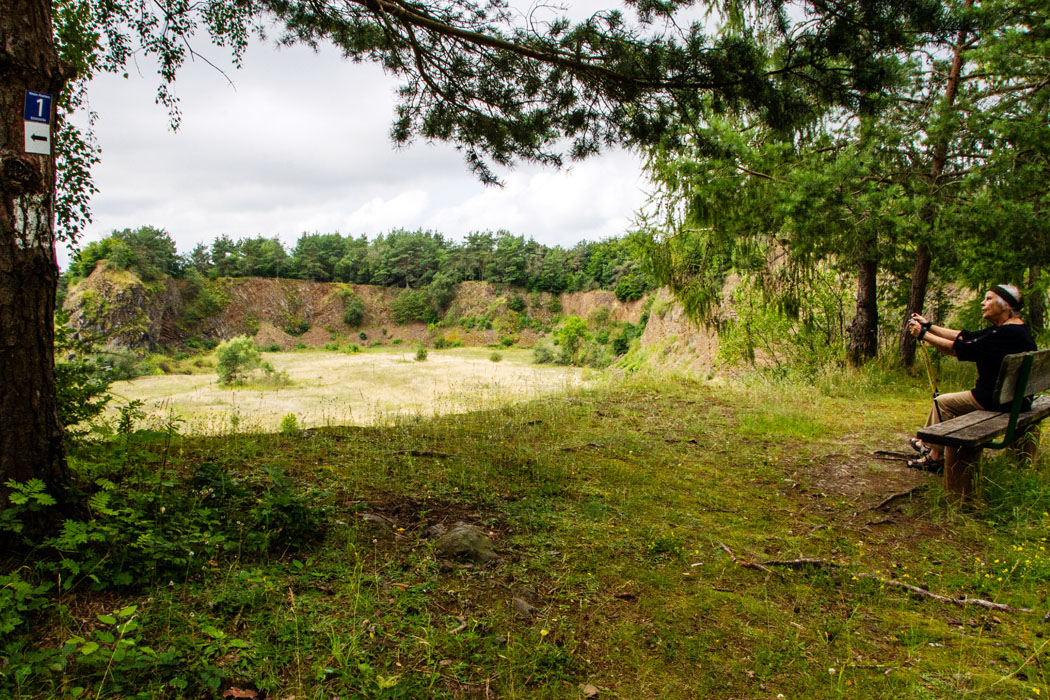 Jenny blickt vom Ruheplatz am Kraterrand hinunter in den Krater