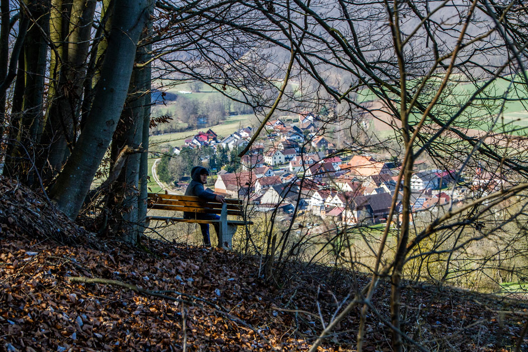 Blick hinunter nach Morlesau und Jenny auf der Bank