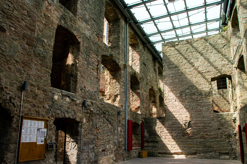 Die Trimburg ist die Ruine einer mittelalterlichen Hoehenburg der Herren von Trimberg oestlich des gleichnamigen Ortes, eines Gemeindeteils von Elfershausen in Unterfranken - Die Ruine liegt weithin sichtbar etwa 60 Meter oberhalb der Fraenkischen Saale auf dem Pfaffenberg - Vom Ort Trimberg aus fuehrt ein steiler, direkter Treppenweg zur Burgruine hinauf - Fahrzeuge benutzen die etwas oestlich gelegene beschilderte Auffahrt zum unweit der Burg gelegenen Parkplatz - ]Die Ruine der Trimburg, so wie sie sich seit Beginn des 19 - Jahrhunderts darstellt, ist eigentlich nur der Rest des zuletzt erbauten Burgteils - Die gesamte Burg bestand urspruenglich aus drei verschiedenen Anlagen aus unterschiedlichen Epochen - Gozzwin von Trimberg begann 1135 mit dem Bau des aeltesten Teils, der jedoch bereits 1187 als Alte Burg (locus castri antiqui) oder auch Leuchtenburg bezeichnet wurde - Das Niedernburg (castrum inferrius) oder Linsenburg genannte Vorwerk am Fuss des Burgberges wurde 1226 erstmals erwaehnt, 1381 und 1401 jedoch nur noch als Gutshof der Herren von Arnstein und von Erthal bezeichnet, der um 1640 endgueltig zerstoert wurde - Die Trimburg verkam auf diese Weise zur Ruine - 1833 sorgte Bayernkoenig Ludwig I - dafuer, dass dem weiteren Verfall Einhalt geboten und die verbliebenen Reste baulich gesichert wurden - Die Trimburg entwickelte sich schnell zu einem beliebten Ausflugsziel - Am 24 - Januar 1980 erwarb der Markt Elfershausen die Trimburg - Seither bemueht sich der Ort zusammen mit dem Verein Freunde der Trimburg, die Burg regelmaessig fuer Besucher zu oeffnen, wobei die Bewirtschaftung wechselweise durch oertliche Vereine durchgefuehrt wird - Hierzu dienen neben dem Burghof das von-Erthal-Zimmer und der zuletzt instand gesetzte Rittersaal und ein Kellergewoelbe - Um 2000 wurde der Bergfried mit einem Kostenaufwand von fast 180 - 000 DM restauriert und wieder besteigbar gemacht - Der Echterbau und der Erthalbau wurden im Fruehjahr 2007 mit einem Wetterschutzdach aus Glas versehen -