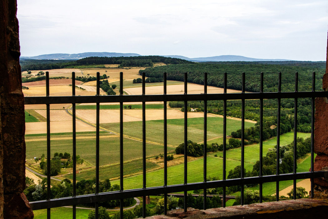im Burginneren - Blick zu den Schwarzen Bergen (links) und dem Kreuzberg (rechts)