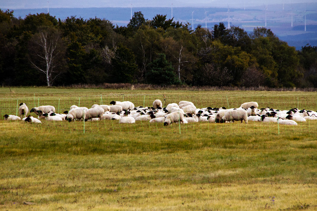 Heute gehoert das Rhoenschaf mit seinem hornlosen, schwarzen Kopf, den unbewollten weissen Beinen und der schlichten Wolle wieder ganz selbstverstaendlich zum Erscheinungsbild der Rhoen. Andere Schafrassen moegen mehr Fleisch und Wolle liefern, diese alte Nutztierrasse ist aber weit besser an die rauen Klimabedingungen der Rhoen angepasst. Dass dieser 'Landschaftspfleger auf vier Beinen' gerettet wurde und wieder einen wichtigen Beitrag zum Erhalt wertvoller Biotope leistet, ist dem BUND-Mitbegruender Prof. Dr. Gerhard Kneitz und vielen BN-Aktiven zu verdanken. - 1985 konnte der BN eine kleine Rhoenschafherde kaufen und einen Schaefer zur Betreuung anstellen. Von da an ging es fuer das Rhoenschaf aufwaerts, denn auch andere Betriebe setzten nach und nach auf diese alte Nutztierrasse. Mittlerweile ist der Bestand auf einige Tausend Tiere angewachsen. Aus dem einstigen Sorgenkind wurde ein Aushaengeschild fuer die Rhoen: Heute steht das Rhoenschafprojekt fuer die gelungene Symbiose von Oekologie und Oekonomie und leistet einen wichtigen Beitrag zum Erhalt einer einzigartigen Kulturlandschaft.
