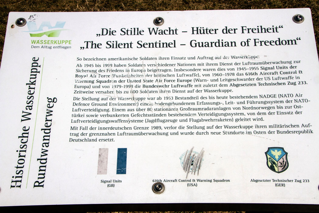 Die Wasserkuppe ist mit 950,2 m ue - NN der hoechste Berg der Rhoen, und zugleich die hoechste Erhebung in Hessen - An diesem wasserreichen Berg, der ueberregional als 'Wiege des Segelflugs' bekannt ist, entspringt die Fulda, weitere 30 Baeche haben hier ihren Ursprung - Der Name 'Wasserkuppe' wird trotz des Quellenreichtums am Berg nicht auf das Wort Wasser sondern auf das mittelhochdeutsche Wort 'Wass' zurueckgefuehrt, das einen Weideplatz bezeichnet - Bereits in Dokumenten des 8 - Jahrhunderts taucht die Wasserkuppe als Wasenkuppe, Asenberg oder Weideberg auf - Darmstaedter Studenten begannen 1910 mit Flugversuchen von der Wasserkuppe - Seit 1923 steht das Fliegerdenkmal, ein Bronzeadler auf einem vulkanischen Basaltschlot - Es erinnert an die gefallenen Flieger des Ersten Weltkriegs und wurde vom 'Ring der Flieger' errichtet - Waehrend der Deutschen Teilung nutzten die US-Amerikanischen Streitkraefte diese Gebaeude und errichteten eine Radarstation - Das Segelflugzentrum auf der Wasserkuppe beinhaltet die aelteste Segelflugschule der Erde - Ganz in der Tradition des Berges finden jedes Jahr auf der Wasserkuppe zahlreiche Segelflugveranstaltungen und Modellflugwettbewerbe statt -