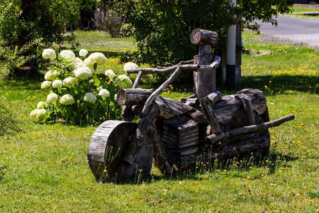 Motorrad mit Fahrer aus Rest-Holzstuecken