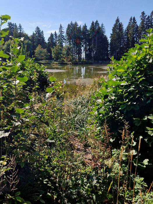 Der Rothsee am Bauersberg.Etwa zwei Kilometer von Bischofsheim entfernt, auf dem Weg zur Hochrhoen, befindet sich der sehr idyllisch gelegene Rothsee_ Hier bestehen Angelmoeglichkeiten und die naehere Umgebung laedt zum Wandern ein, denn gleich dahinter beginnt das Naturschutzgebiet der Langen Rhoen_ Die Fischerhuette direkt am See lockt mit Fischspezialitaeten aus dem Raeucherofen_ Sie ist in der Wandersaison (i_d_R_ von Ostern bis Mitte Oktober von 08_00 bis 20_00 Uhr) geoeffnet_